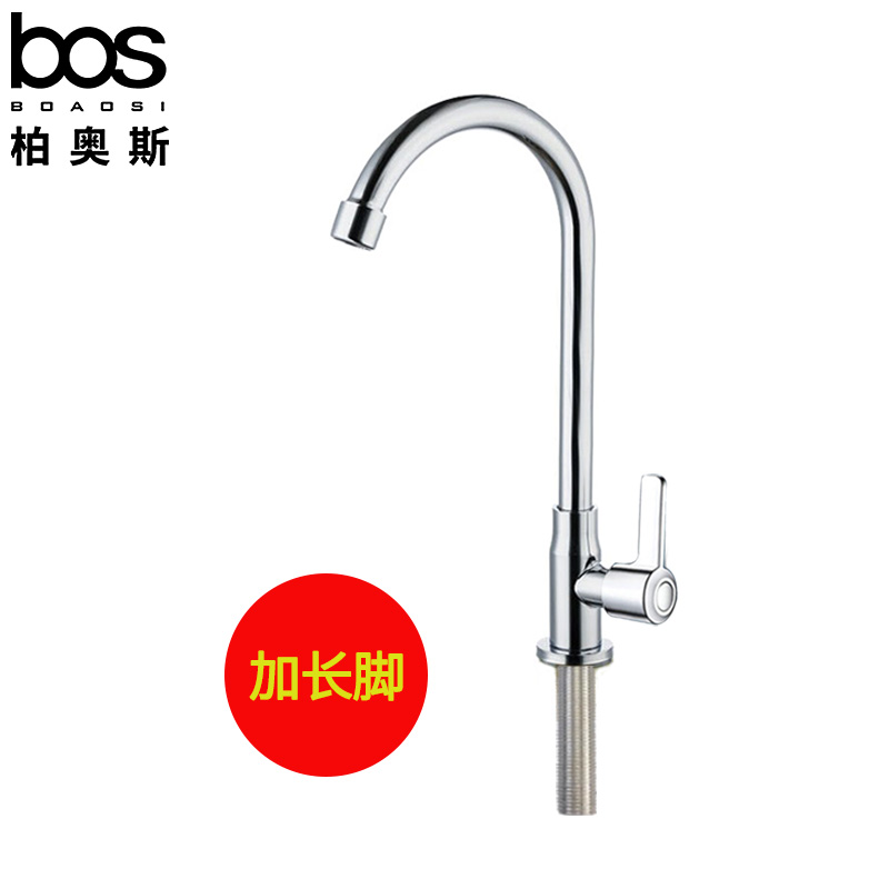 加长镀铬滚珠单冷立式厨房龙头