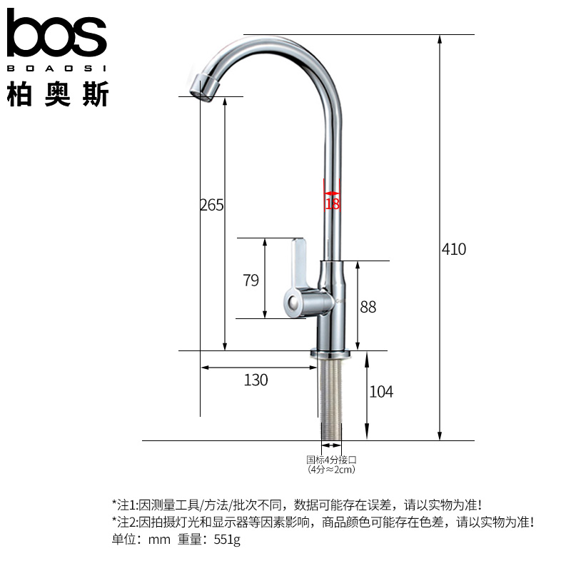 商品名称:加长镀铬滚珠单冷立式厨房龙头